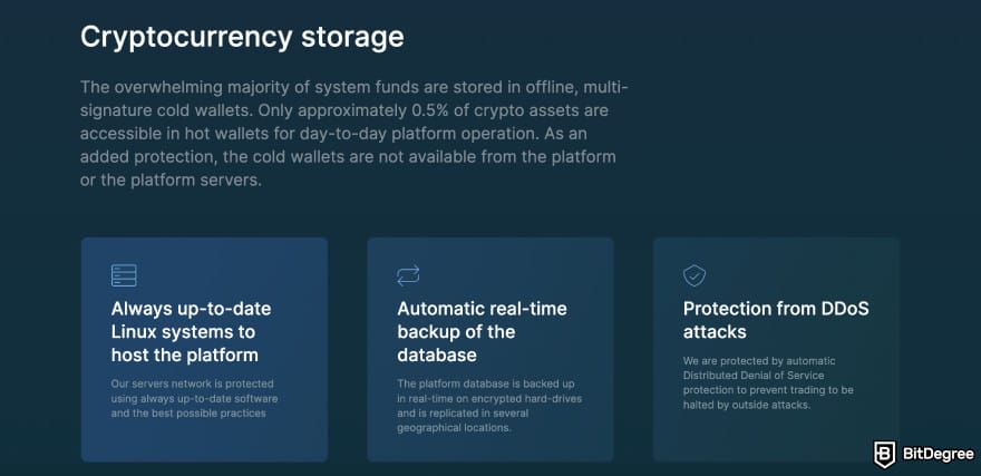 Multiple Bitfinex reviews emphasize the fact that the exchange keeps 99,5% of its users’ crypto assets in cold storage devices. That is truly one of the best security features that Bitfinex employs!