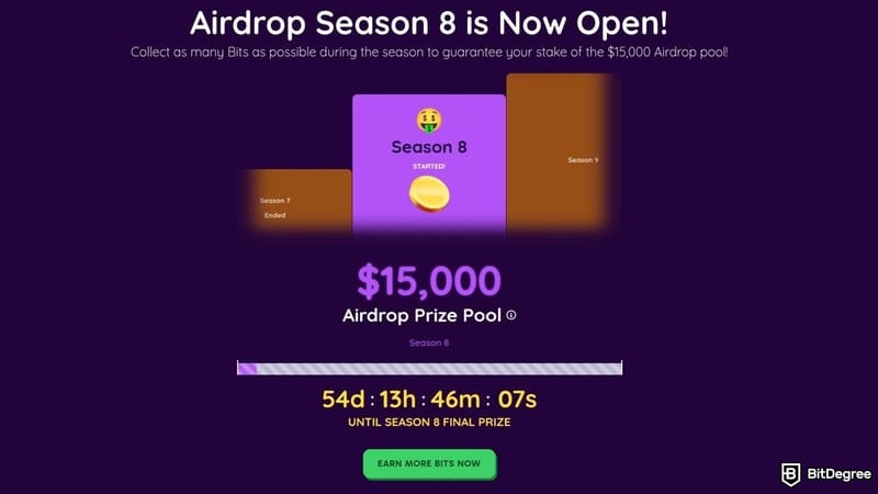 BitDegree Airdrop Season 8 is now live, and it features a prize pool of up to $15,000.